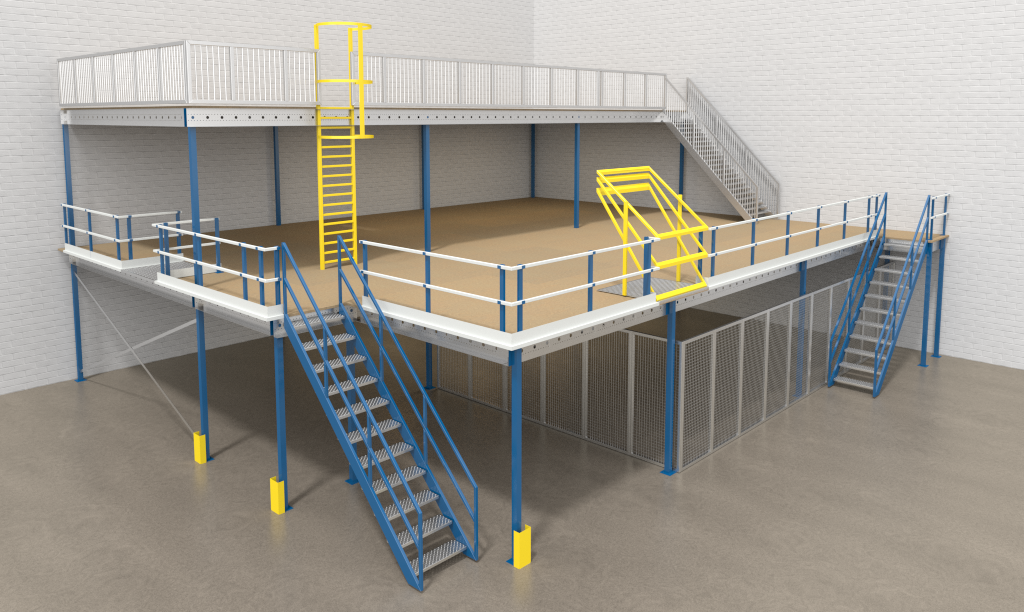Ein Zwischenboden ist ein Zwischenboden, der zur Schaffung von zusätzlichem Stauraum in einem Lager oder Büro verwendet werden kann.
